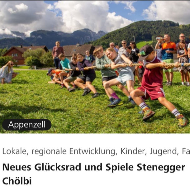 Klicke auf den Link und ermögliche damit die Anschaffung eines „Neuen Glücksrads für die Stenegger Chölbi“ - sinnstiftend lokal produziert in der Stääg Appenzell, einer Institution für Wohnen und Arbeiten. https://www.lokalhelden.ch/verein-ok-stenegge-dorflebe#vote Alles Weitere im Mailing der Raiffeisenbank Appenzell, welches du als Mitglied gestern in deinen Briefkasten erhalten hast. Herzliche Grüße Dein OK Dorflebe Stenegg