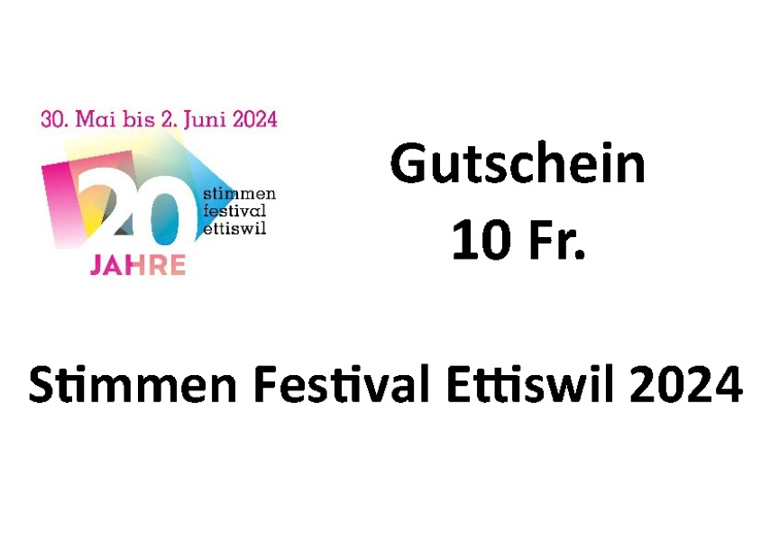 Gutschein 10 Fr. einlösbar für ein Konzert des Stimmen Festivals Ettiswil nach Ihrer Wahl