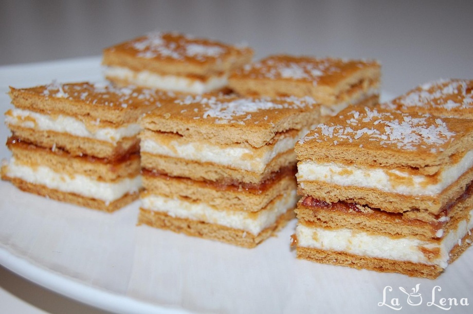"Prajitura Albinuta" ist ein beliebter rumänischer Kuchen, der für seine zarten, honigartigen Schichten bekannt ist. Der Name "Albinuta" bedeutet "Kleine Biene" und verweist auf die goldene Farbe des Kuchens. Er besteht aus weichen, honigduftenden Teigschichten, die mit einer cremigen Füllung aus Butter, Honig und Vanille gefüllt sind. Ein köstlicher Genuss in jeder Bissen.