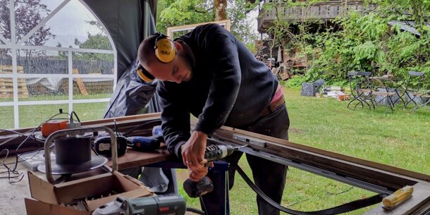 Bei diesem Arbeitsschritt geht es darum die hergestellten Einzelteile zu einem Wandelement zusammenzubauen. Für diesen Teil der Arbeit verwenden wir vorwiegend den Akkuschrauber.