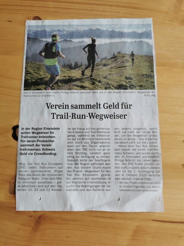 39 h bleiben übrig und uns fehlen noch 980 CHF! Helft noch einmal alle kräftig mit und teilt das Projekt, überzeugt eure Kollegen einen bescheidenen 20er zu spenden und die Mercis auch bei euch in der Arbeit schmackhaft zu machen. Als Motivation hier die Ausgabe des Einsiedler Anzeiger letzter Woche, mit viel positivem Feedback und neuen TRE Registrationen für dieses Jahr! WIR ZÄHLEN AUF EUCH!!!