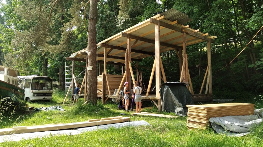 Das Geld brauchen wir hauptsächlich für Baumaterial. Aus finanziellen und ökologischen Gründen haben wir möglichst viele Teile second-hand gekauft oder bei abbruchreifen Gebäuden abgebaut und geschenkt bekommen. Einige Dinge, die wir so nicht gefunden haben, mussten wir allerdings neu kaufen. So zum Beispiel Schrauben oder Dachlatten. Einen kleineren Betrag haben wir einberechnet für Sport- und Nutzungsmaterial, wenn der Raum fertiggestellt ist. Dazu gehören Yogamatten, Sitzkissen, Decken usw.