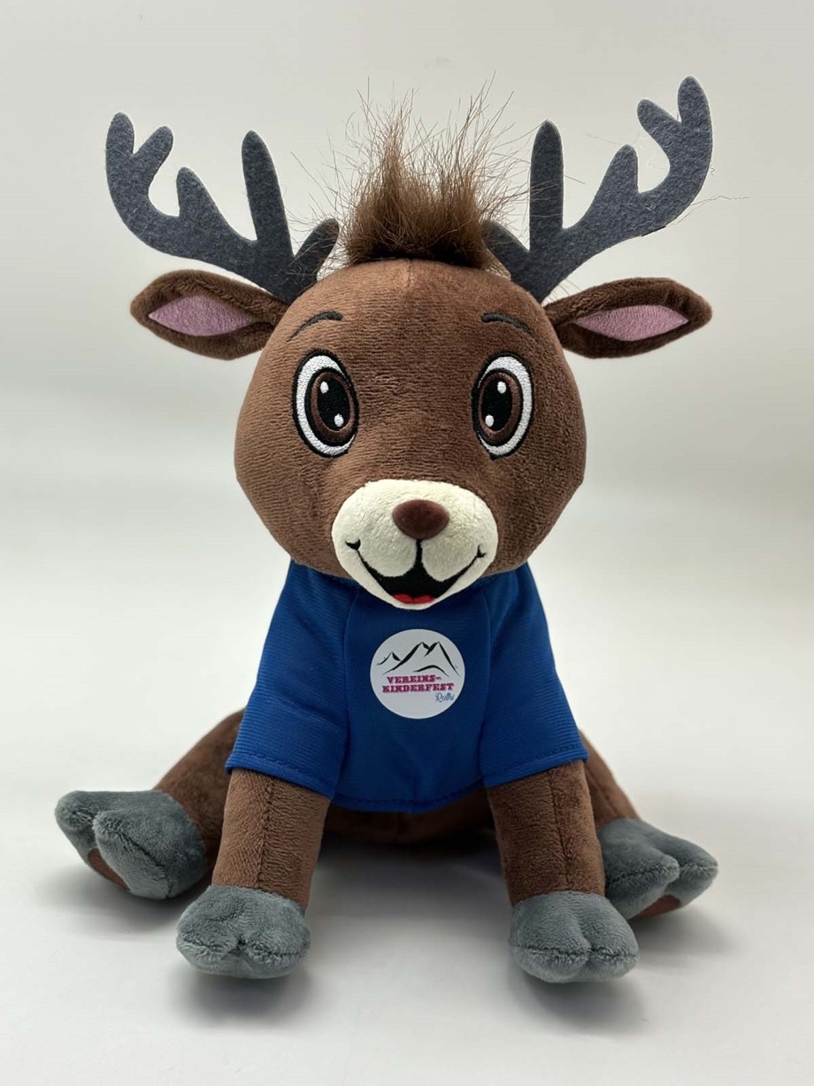 Jeder Unterstützer erhält als Dankeschön ein exklusives Plüschtier, den Rüthner Hirsch, mit dem Kinderfest Logo.