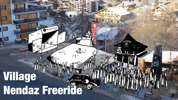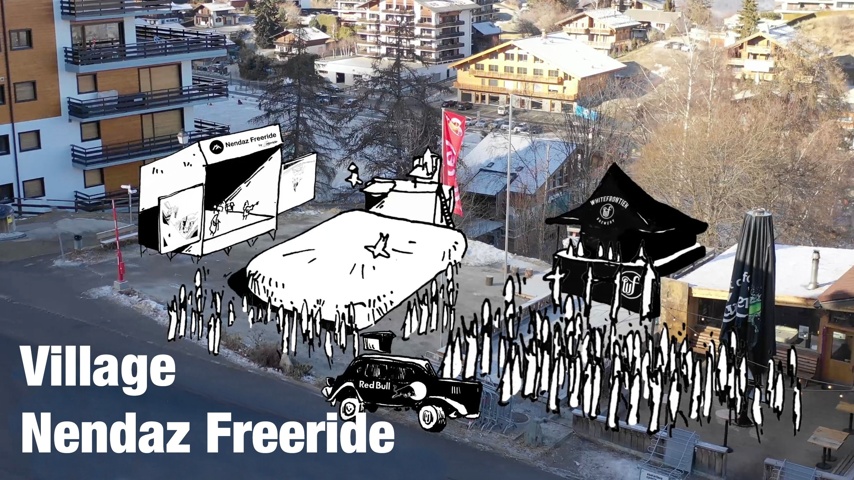 Le Village Nendaz Freeride sera situé sur le parking devant l'Edelweiss. Il comportera :