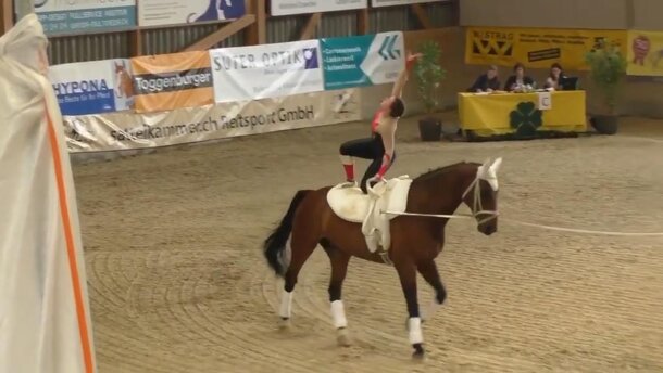 Das Turnier in Schaffhausen war ein grosser Erfolg. Im Damen Einzel hat sich unsere Voltigiererin Gioia Girardet höchstwahrscheinlich für die Schweizer Meisterschaften qualifiziert. Sie ging mit unserem Verlasspferd Edi an den Start, der wie immer seinen Job mit Bravour meisterte. Gioias Programm war nicht ganz fehlerfrei, aber sie lies sich nicht beirren und turnte ruhig weiter. Ohne dass wir bisher begonnen haben, nach einem neuen Pferd zu schauen, wurden uns in den letzten Wochen schon sehr gute Pferde angeboten. Leider aber war noch nicht das für uns passende Pferd dabei. Wir hoffen natürlich sehr, dass wir das richtige Pferd finden werden und dass das Geld zusammen kommt, welches uns ermöglicht, den Partner für den Einstieg in den grossen Sport zu kaufen. Liebe Spender und Sponsoren, wir danken Ihnen für Ihre Unterstützung und freuen uns, wenn Sie einfach einmal bei einem Training vorbei kommen, um sich die Arbeit mit unseren Pferden, Kindern und Jugendlichen anzuschauen. Wir zeigen Ihnen gerne alles, was wir mit und um das Pferd tun. Zu erleben, wie ein Pferd, Kinder und Jugendliche in ihrer Entwicklung unterstützt werden und wie liebevoll und verantwortungsbewusst schon unsere jüngsten Vereinsmitglieder mit ihren Pferden umgehen, ist auch für uns immer wieder ein tolles Erlebnis. Wir danken allen Unterstützern und freuen uns darauf, Sie alle einmal persönlich kennenzulernen. Ihre Voltis aus Stäfa