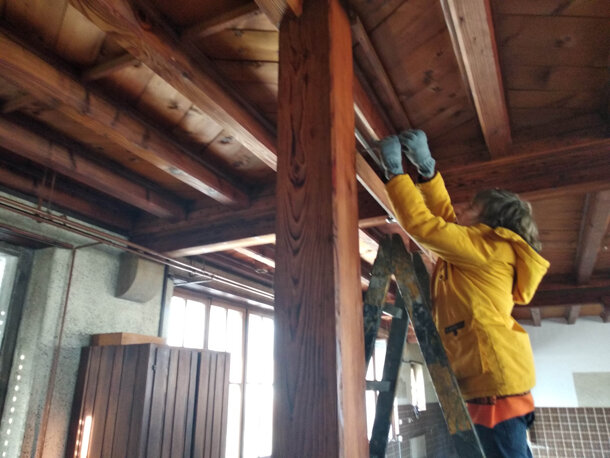 Inzwischen sind wir praktisch ununterbrochen am Umbauen in der Kantine. Es sind auch bereits einige Materialspenden eingetroffen wie z.B. ein Klavier, ein Tisch, eine Bank, Helferbier... genial! Sogar die Kleinsten helfen tatkräftig mit.