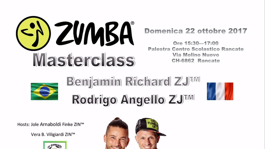 Desideriamo organizzare un evento Zumba® con 2 performers internazionali (Benjamin Richard e Rodrigo Angello sono 2 coreografi, istruttori di istruttori conosciuti nel mondo Zumba®) per fare conoscere meglio l'attività Zumba® e promuovere l'attività fisica nella nostra regione.