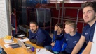 Betreuer und die Eltern mit einem Lachenden und Weinenden Auge zu