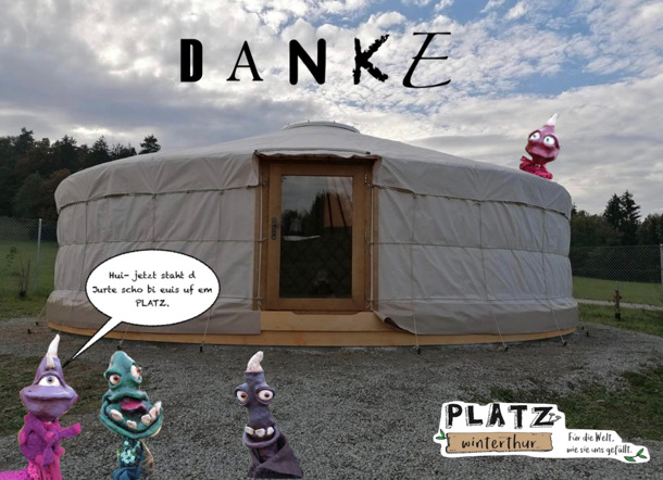 Liebe PLATZ- Fans Wir haben es geschafft! Wir freuen uns riesig, dass die Jurte bereits aufgestellt ist & schon bald viele gemütliche Stunden dort verbringen dürfen. Auch der Vorplatz, der Ofen & die Inneneinrichtung sind finanziert. An dieser Stelle ein herzliches DANKESCHÖN! Ohne eure Unterstützung wäre dies nicht möglich gewesen. Herzliche Grüsse das PLATZ-Team