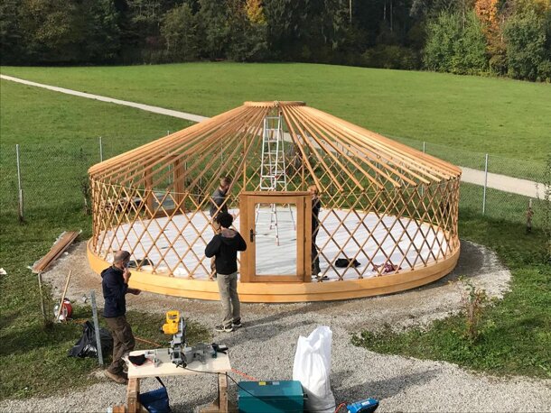 Wir haben es geschafft! Wir freuen uns riesig, dass die Jurte bereits aufgestellt ist & schon bald viele gemütliche Stunden dort verbringen dürfen.