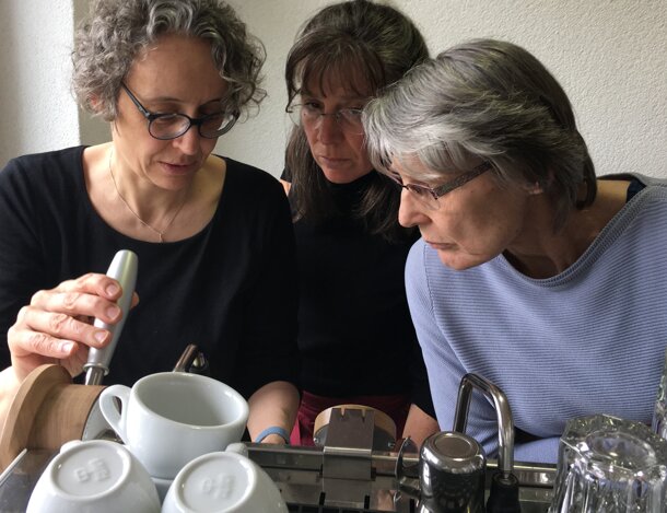 Wir sind einen grossen Schritt weiter! Seit Freitag sind wir stolze Besitzer einer Steamhammer Elettronica vom Kaffeemaschinen-Hersteller XLVI in der Nähe von Rimini/IT. Kompetent geliefert und installiert von Antonio und Davide von Pro Kaffeemaschine in Zürich. Natürlich steht die Steamhammer nicht einfach am Boden rum, sondern auf der wunderschönen Theke, die Timon von TEIMI HOMES uns gebaut hat. Es war ein langer Weg von den ersten Ideen zum finalen Ergebnis, das sich bereits bestens bewährt hat. Denn ... ... heute Morgen haben wir im "Chilekafi" 70 Kaffees produziert - von Espresso über Latte Macchiato und Americano zum allseits beliebten Cappuccino. Die Gäste standen Schlange und bewunderten dabei Theke, Kaffeemaschine und Baristas;-) Kommende Woche wechseln wir von der Start- in die Finanzierungsphase - bleibt dran und helft uns, das Finanzierungsziel bis am 30.4. zu erreichen. Viiiiielen Daaaaank!