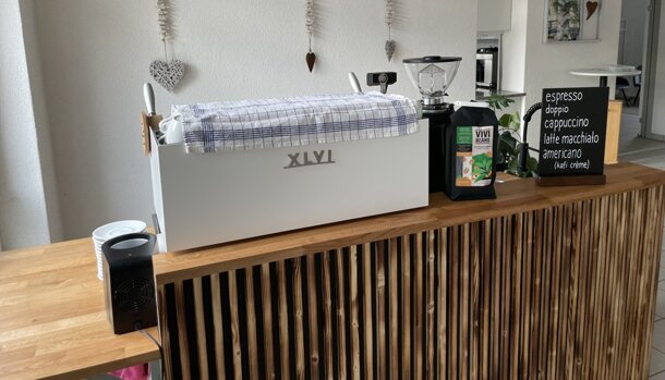 ... heute Morgen haben wir im "Chilekafi" 70 Kaffees produziert - von Espresso über Latte Macchiato und Americano zum allseits beliebten Cappuccino. Die Gäste standen Schlange und bewunderten dabei Theke, Kaffeemaschine und Baristas;-)