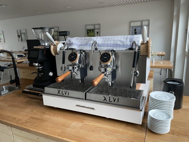 Wir sind einen grossen Schritt weiter! Seit Freitag sind wir stolze Besitzer einer Steamhammer Elettronica vom Kaffeemaschinen-Hersteller XLVI in der Nähe von Rimini/IT. Kompetent geliefert und installiert von Antonio und Davide von Pro Kaffeemaschine in Zürich.