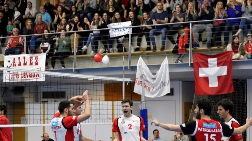 Le comité du Lutry-Lavaux Volleyball et les joueurs de la LNA.