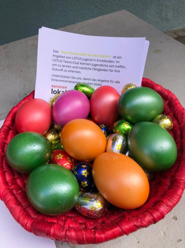 Gestern verschenkten wir Ostereier auf dem Badener Wochenmarkt und im Zentrum von Ennetbaden. Einige Jugendliche sind bereits begeisterte Transmitter*innen unseres Lokalhelden-Projektes. Sie erzählten mir, wie ihre Vorgehensweise ist: "Grüezi! Wir sind vom LOTUS-Teens-Club von Ennetbaden. Das ist ein Lernstudio, wo Kinder und Jugendliche hingehen können, um ihre Lernziele zu erreichen. Damit das Angebot weiterhin von allen Einkommensklassen bezahlt werden kann, haben wir bei Lokalhelden eine Spendenaktion." Dann erhielten die Passanten einen Flyer mit dem Link. Spannende Gespräche, amüsante Erlebnisse und Bargeldspenden. Welche Freude! Wir freuen uns, wenn auch Sie die Idee nochmals weitertragen, damit die erste Fiananzierungs-Schwelle in Kürze erreicht wird. Ich danke euch allen ganz herzlich für eure Unterstützung!