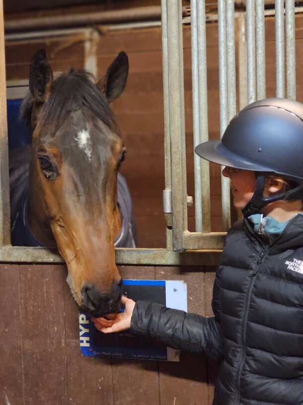 La semaine dernière, tout s'est accéléré quand le cheval parfait pour Manon à fait son apparition sur le marché ! Repéré par Sandy Crausaz et Martin Kühnis, il saute déjà 125cm et a de l'expérience. Adorable, pas trop grand et avec un peu de sang., les deux font la paire. Manon a fait une séance de test à Susten, aux écuries de Martin, ce fût une révélation. Et mardi il rentrait avec Sandy à Rue... Le début d'une longue et belle histoire, on l'espère! Angélique
