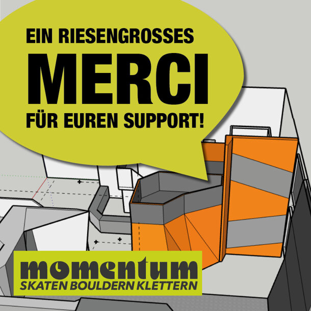 Hallo liebe Fans des Ausbauprojekts des Momentums in Olten. Das Crowdfunding für unser Ausbauprojekt kommt in die heisse Phase. Insgesamt 80 Unterstützerinnen und Unterstützer haben bereits 13'740 CHF für unser Projekt gesammelt. Jetzt schaffen wir auch noch das letzte Drittel des Weges in den verbleibenden 2 Wochen. Das Projektteam ist zudem einerseits erfolgreich mit neuen Sponsoren im Gespräch und andererseits dabei für die alten Elemente eine sinnvolle Wiederverwendung zu finden. Ein Teil konnte bereits mit vereinten Kräften der Rollbrettbueben Oute abmontiert, nach Schönenwerd verfrachtet, angeschraubt und damit die Weihnachtsüberraschung für 50 Kinder perfekt gemacht werden. Nun findet auch unser alter Boulderblock ein neues Zuhause gegen eine grosszügige Spende und damit ist der Platz schon mal frei für die neue Wand! Apropos: Um die Botschaft von unserem Projekt weiter zu tragen, findet ihr ganz unten den Entwurf für eine Werbung für unseren Ausbau-Eröffnunsapero. Ganz optimistisch hoffen wir auf Lockerungen im April und tolles Wetter für einen Apero mit Leckereien und den Austausch mit Euch. Dazu laden wir 30 Unterstützerinnen und Unterstützer ein. 13 Plätze sind schon weg, sichere Dir noch einen oder lade jetzt Deine Freunde ein mitzukommen und die neue Wand zu testen. Hilf uns weiterhin die Botschaft auf allen Kanälen zu teilen, sei es Signal, Whatsapp, Telefon oder an der Haustür :) Wir zählen auf Euch. Nach dem Motto: Wir alle gemeinsam sind das Momentum und das Momentum wächst mit uns! Viele Grüsse von Tobi, Alex und dem ganzen Momentum-Team
