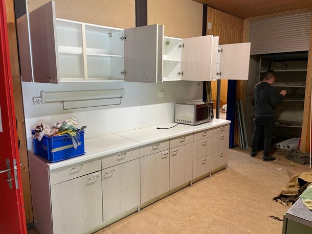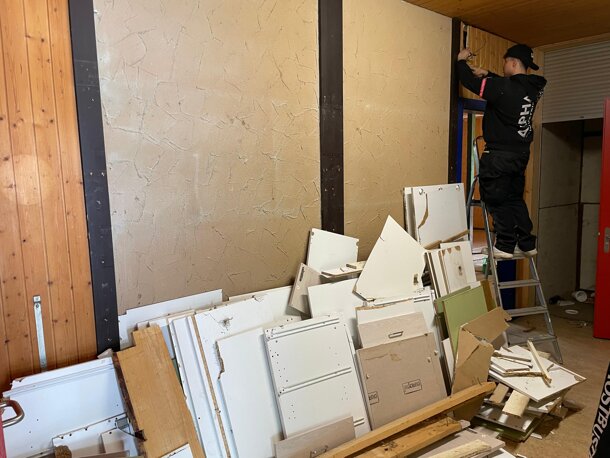 Der Umbau begann am 4. Mai mit der Anlieferung der ersten Entsorgungsmulde, gefolgt von Eigenleistungen beim Entrümpeln und Abriss. Impressionen des Tages seht ihr in den Blogbildern.
