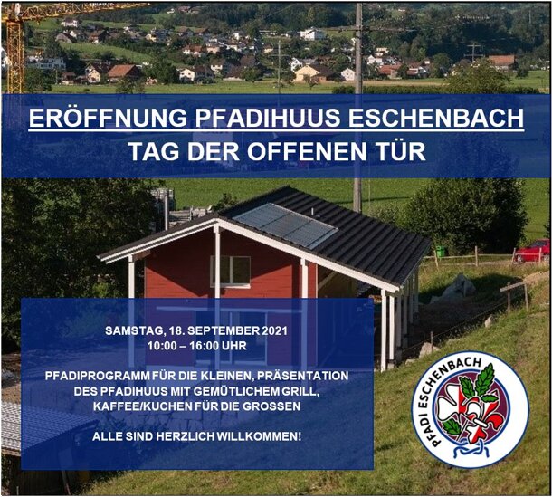 Liebe Unterstützer:innen Lange ist es her, seit wir uns das letzte Mal bei euch gemeldet haben. Viel ist seither passiert. Mit euren vielen Spenden, viel Power und Durchhaltewille des gesamten Pfaditeams, der grossen Unterstützung von diversen Unternehmen, der Gemeinde Eschenbach und vielen Stiftungen wurde es möglich, den tollen Neubau schlussendlich zu realisieren. Und wir sind sowas von glücklich, was für ein tolles Haus wir jetzt unser Eigen nennen dürfen. Die Arbeiten sind bereits seit dem letztem Herbst abgeschlossen, seit dem Frühjahr macht die Pfadi auch aktiv Gebrauch von ihrem neuen Zuhause. Aber euch und der ganzen Öffentlichkeit konnten wir (coronabedingt) unser Pfadihuus bis jetzt leider noch nicht zeigen. Das wollen wir jetzt aber ändern! Wir eröffnen unser Pfadihuus am Samstag, 18. September 2021 und laden euch alle herzlich dazu ein, das Pfadihuus zu besichtigen. Wir organisieren einen Tag der offenen Tür (10:00 - 16:00 Uhr), während welchem wir alle Räume öffnen und unterschiedlich dekorieren. So könnt ihr euch über den gesamten Bau, über die vielen Unterstützer:innen und die Pfadi Eschenbach als Verein informieren und gleichzeitig das Pfadihuus von innen und aussen bestaunen. Bei Kaffee, Kuchen oder einer Wurst können sich alle zudem vor dem Pfadihuus gemütlich machen. Für die Kinder und Jugendlichen organisiert das Leitungsteam der Pfadi Eschenbach rund um das Pfadihuus einen abenteuerlichen Pfadi-Postenlauf mit vielen spannenden Aufgaben. Wir würden uns enorm freuen, viele von euch am 18.09. anzutreffen und euch mit Stolz unser neues Pfadihuus zu zeigen. Liebe Pfadigrüsse Maurus Haselbach v/o Omega Bei Fragen darfst du dich ungeniert bei mir melden ( Mail ).