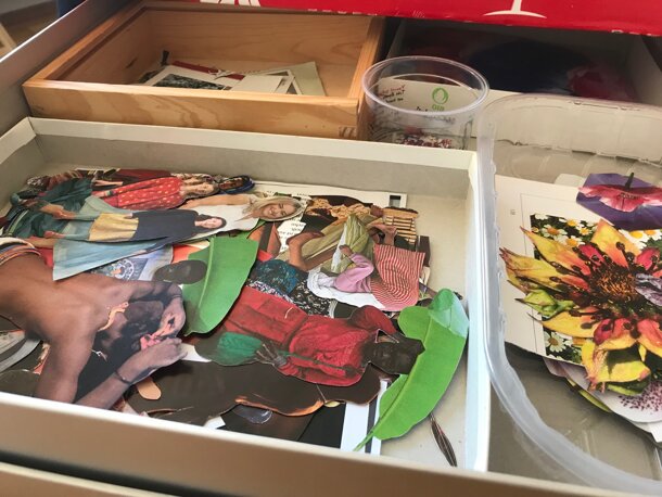 Hereinspaziert in ein Psycollage Atelier, geleitet von unserer Psychoonkologischen Beraterin und Coach Regula und unserer Kunsttherapeutin Pia. Eine Atelieranmeldung, ein kurzes Standortgespräch mit Regula und/oder Pia und schon kanns losgehen – in der Gruppe begleitet von Einzelsitzungen. Mit Ausschnitten aus diversem Bildmaterial, Schere und Leim werden die individuellen Collagen gestaltet. Details, die uns ansprechen, werden ausgeschnitten und damit das eigene Bild gelegt. «Es gibt kein Richtig oder Falsch, jedes Bild ist einzigartig und entsteht von innen heraus. Collagen haben ihre ganz eigene Sprache und sind ein wunderbares Medium, um sich auszudrücken. Das Suchen nach Bildern, das Legen der Ausschnitte, das Werden des Bildes ist ein beruhigender und sinnlicher Prozess.» Regula fügt hinzu : «Die kleinen Details in den Collagen sprechen meist mehr als tausend Worte. Sei es zum Beispiel durch das Zusammenspiel der Farben oder durch die Gegensätze der gewählten Collage Bilder.» Da es oft nur begrenzt möglich ist die Situation zu verändern, kann es sehr hilfreich sein, die Sicht auf diese verändern zu können. Dabei geht es nicht darum etwas zu verdrängen, sondern es auch aus einem anderen Blickwinkel betrachten zu können. Dieser Entwicklungsprozess ermöglicht es uns, aus der Ohnmacht wieder in die Handlung zu kommen. «Für uns erfüllt ein Atelier seinen Zweck, wenn unsere Teilnehmer nicht nur mit einer Collage nach Hause gehen, sondern auch mit den Erkenntnissen und Einsichten, wie sie zu ihrem Kunstwerk gekommen sind. Das Bewusstsein, was die Collage alles unbewusst wiedergibt und wie wir mit diesen Erkenntnissen umgehen können – dies soll die wertvolle Erfahrung au dem Psycollage Atelier sein. » so Regula weiter. Dies war ein kurzes Einblick in ein Psycollage Atelier – weitere folgen und wir nehmen Euch gerne mich auf den Weg mit den Bildern der Seele. Herzlichst, euer Pycollage Team
