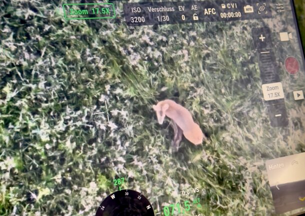 Sechs Wiesen angemeldet bekommen, konnten wir wegen des Regens erst um 6 Uhr unsere Suchflüge starten. Schon in der ersten Wiese konnten wir ein Rehkitz orten. Die zwei folgenden Wiesen waren leer. Wiese vier ergab ein weiteres Rehkitz und in der fünften Wiese war ein Kitz und seine Mutter anwesend. Wiese sechs wiederum war leer. 3 Kitze an einem Morgen zeigen klar - die Hochsaison der Kitze hat begonnen. Wegen der Wetterprognosen haben aber beide Bauern kurzfristig entschieden heute noch nicht zu mähen. Wir werden die Rettungen also zu einem späteren Zeitpunkt nochmal begleiten müssen.