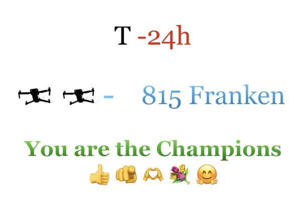 Ihr alle habt uns über die Finanzierungsphase so grossartig unterstützt, dass wir das Mindestziel weit überschritten haben. Mit einem derart grossartigen Einsatz von Eurer Seite haben wir nicht zu träumen gewagt. Ihr seit die besten Fans und Unterstützer, die man sich denken kann. Herzlichen Dank für Euren Einsatz. Aktuell fehlen uns lediglich noch 815 Franken um auch das Wunschziel zu erreichen. Bei grossartigen 45 Fans und 133 Unterstützern könnt Ihr vielleicht noch ein paar Gleichgesinnte mobilisieren, die uns helfen auch das Wunschziel noch zu erreichen… Übrigens: ein Kontrollflug Gestern Abend (Donnerstag) hat uns weitere vier Rehkitze finden lassen, deren Rettung voraussichtlich am Montag fällig sein wird. Wenn das Wetter mitspielt, werden dann weitere 11 Wiesen gemäht. Wir sind jedenfalls bereit.