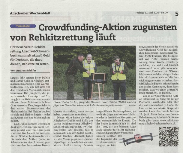 Am Freitag ist im Allschwiler Wochenblatt ein Artikel über unser Crowdfunding erschienen. Vielen Dank an die Redaktion!