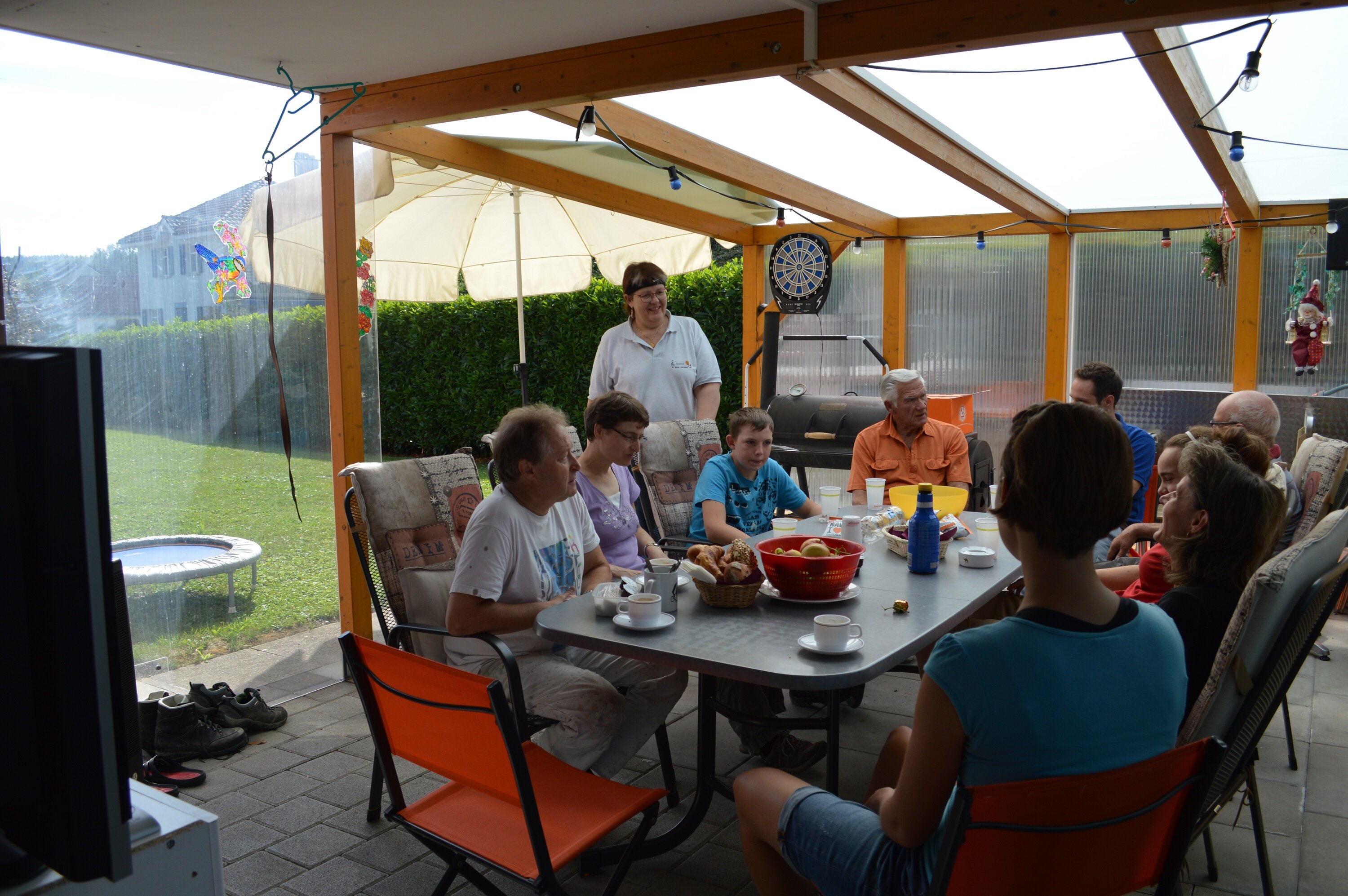 Es ist 9:30 Uhr, Zeit für die Znünipause. Wir gehen alle gemeinsam in das Haus nebenan, wo Susanne allen Helfern Kaffee, Brötli und Früchte bereitstellt. «Jeder unterstützt den Umbau mit dem, was er am besten kann. Über Verpflegung sind wir genauso dankbar wie über das Mischen von Beton», sagt mir Astrid und gönnt sich einen Schluck Kaffee. Wenn sie so vieles selber machen, wofür wird dann das Crowdfunding-Geld verwendet? «Einen Grossteil der Arbeiten machen wir selbst. Von dem gesammelten Geld kaufen wir die Baumaterialien, zum Beispiel das Isolationsmaterial und den Verputz. Vor allem aber zahlen wir mit dem Geld die Kosten für Arbeiten wie beispielsweise die Kernbohrung für die neue Heizung, die wir nicht selbst machen können.»