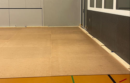 Neuer Holzboden für das Rhönradtraining für die Disziplin Spirale in der Turnhalle in Waldstatt.