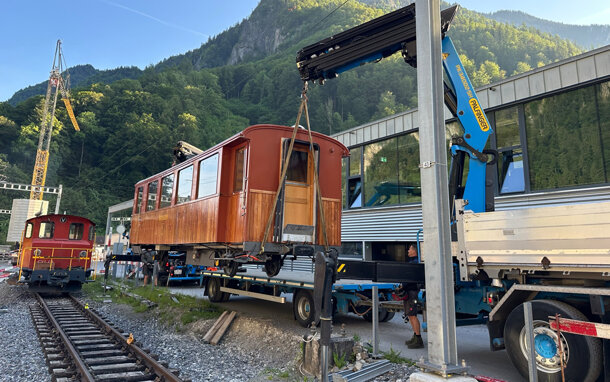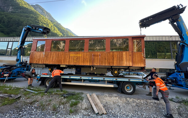 Der historische Ambassador-Salonwagen B2 Nr. 17 aus dem Jahre 1912 hat den Weg vom Berner Oberland zu uns geschafft. Ein grosser Dank an die Jungfraubahnen für die Leihgabe und ein noch grösserer Dank an alle, die beim Crowdfunding mitgemacht haben. Mit eurer Spende wurde der aufwändige Transport zu uns nach Wildegg ermöglicht. Der Wagon wird Teil der Führungen auf dem Schotterplatz ☺️
