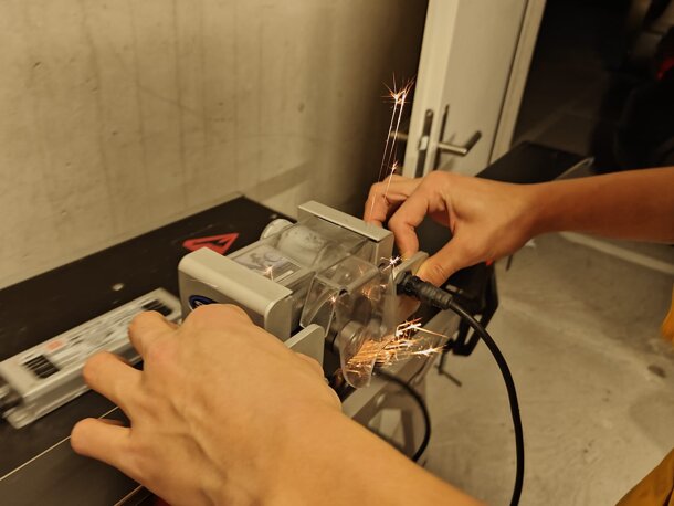 Entre chaque épreuve et compétition, il faut entretenir le matériel. Si les skieurs des cadres C et plus haut ont des ski(wo)men professionnels, pour les tout jeunes c'est bien souvent les parents (merci papa pour toutes les heures!) qui le font.