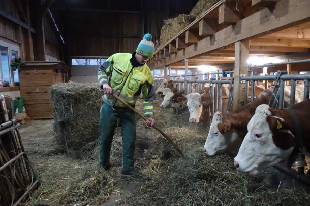 Nous exploitons les 21 hectares de notre exploitation selon le cahier des charges de Bio Suisse. Toutes nos vaches, dont une partie de la race brune originale (référencée par Pro Specie Rara), ont pu rejoindre leur nouvelle étable l’été passé. Afin de pouvoir valoriser leur lait sur notre exploitation, j’aimerais construire une fromagerie ainsi qu’un petit magasin en self-service pour les marcheurs. Je désire utiliser le savoir-faire de mon premier métier afin de produire la Tête de Moine AOP fermière au feu de bois.