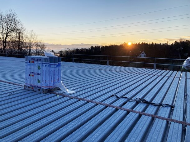Liebe Fans und Unterstützer, es ist soweit – wir sammeln noch bis heute Punkt Mitternacht auf diesem Kanal für unsere Trainingshalle. Eines kann jetzt schon einmal vorweg genommen werden, nur Dank EUCH haben wir es soweit geschafft und hier einen sehr anständigen Betrag sammeln können. Dafür HERZLICHEN DANK im Namen der Egger Sportvereine!! Die Finanzierung ist damit aber nicht abgeschlossen, wir sammeln weiter um unser ehrgeiziges Ziel zu erreichen. Über den unten erwähnten link könnt Ihr Euch für den Newsletter anmelden, sodass wir Euch über die weiteren Entwicklungen unserer Trainingshalle informieren können. Mit einem update & Gruss von der Baustelle verabschiede ich mich auf diesem Kanal und wechsle ab Mitternacht zusammen mit hoffentlich ganz vielen von Euch auf www.trainingshalle-schuerwies.ch KW 49: Am Dienstag haben wir einen der letzten schönen Tage genutzt um die Dampfbremse auf dem Tragblech zu verlegen. Wir haben es geschafft die ca. 1'200 m2 Bitumenfolie in einem Tag zu verlegen. (sogar der Gemeindepräsident hat uns noch beehrt..). Somit ist das Dach provisorisch dicht. Die Wärmedämmung, Abdichtung, Begrünung und PV-Anlage folgen dann im neuen Jahr. Weiter sind wir an der Montage der Wandpaneelen. Wir hoffen bis Weihnachten möglichst viel montiert zu haben. Mit der Dampfbremse wurden auch 3,4 km Akustikkeile in die gelochten Sicken des Tragbleches verlegt. Dadurch wird der Schall in der Halle gebrochen und der Lärm erheblich reduziert. Bis Weihnachten wird nun an der Fassade Weitergearbeitet.