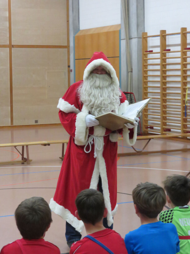 Samichlaus du liäbä maa, lueg mi bitte nöd so aa, du weisch mir bruchäd meh Platz zum trainiäre, Drum dönd d'Verein in Egg nöd lang studierä und suächäd Sponosrä wo hälfäd d'Hallä finanziere. Jetzt sammled mär dänn scho bald äs Jahr, Samichlaus, chasch mer s glaube, das isch wahr, oisi Sponsrä düend ebä au a anderi dänke und mängsmal s'letschti Hämp verschänke. Samichlaus du liäbä maa, lueg mi bitte nöd so aa, nöd nur bi diir brännt äs Liechtli zwüschäd dä Tanne, Nei, nämli au schon gli i oisärä neue Hallä. Gar mängem Chind chlopft drum s'Herz scho fescht, dänn die neu Hallä isch eifach s bescht, und nöd nur wil s WM isch und drum zum Trotz, chömed gschwind go luegä, d Nati nimmt hüt dä Ronaldo hops. Euch allen einen schönen Samichlausabend - (noch 5 Tage wird hier gesammelt...)