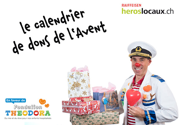 La période de Noël se veut un moment de partage et d'entraide. C'est pourquoi heroslocaux.ch soutient le projet de crowdfunding de la Fondation Theodora par une campagne toute spéciale : La plateforme démarre un calendrier de dons de l'Avent au profit de la Fondation Théodora. Ici, vous découvrez chaque jour un nouveau «merci» limité.
