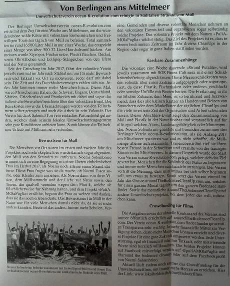 Mein Name ist Noemi Solombrino, ich bin gelernte Filmemacherin, Schauspielerin und Künstlerin (sole-ocean.com). Ich habe mich extra für den Umweltschutz professionell zur Filmemacherin weiterbilden lassen um unserer Natur eine Stimme zu schenken. Zudem bin ich Präsidentin vom volontären Verein ocean-R-evolution.com in Berlingen, TG. Wir realisieren als volontäre Projekte unter anderem das AroundTheBodenseeCleanUp.com.