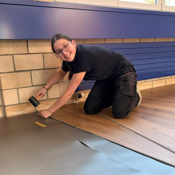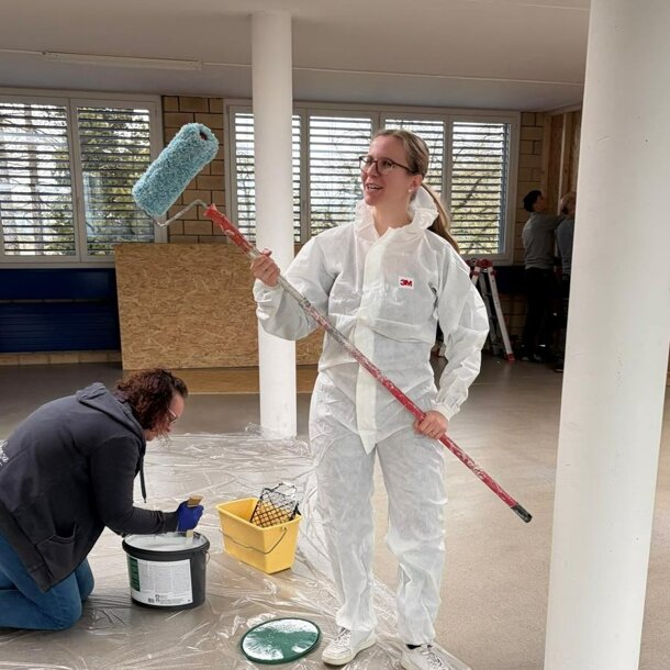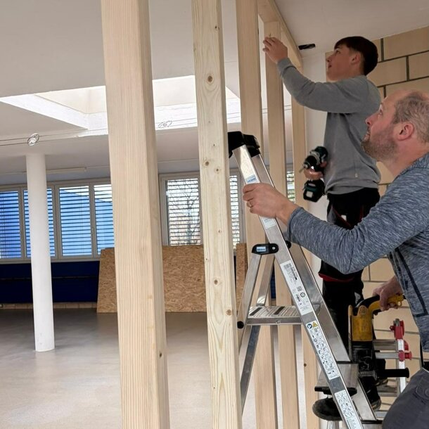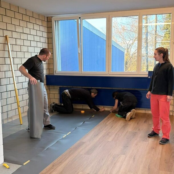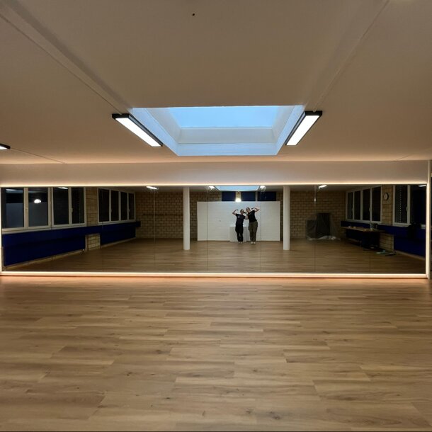 Nachdem eine Trennwand montiert wurde, durften wir vom Vorstand diverse Wände malen, bevor dann viele helfende Hände den neuen Tanzboden verlegt haben. Auch neue Lampen durften wir montieren, ein neuer Vorraum mit Garderobe ist entstanden und am letzten Samstag wurden die grossen Spiegel montiert und die letzten Abschlussarbeiten durchgeführt.