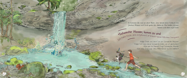 Liebe Waldtraum-Freunde, Wir haben es bald geschafft und die Rakete hat die 10'000 Fr. - Schwelle überflogen. Eine Woche Zeit hat die Rakete noch dafür. Eine Woche Zeit, um unserem Waldtraum zum Bilderbuch zu verhelfen :-) Das Bild hier ist ein Vorgeschmack, wie die Seite mit Schwester Wasser aussehen könnte, wenn die Schrift dazukommt. Danke für eure Unterstützung bisher und fürs gemeinsam mithelfen, dass mit dem letzten Schub diese Woche die wichtige Schwelle erreicht wird, so dass das Geld dann auch wirklich ausgezahlt werden kann. Mit freudigen Wald-Grüssen, Chantal