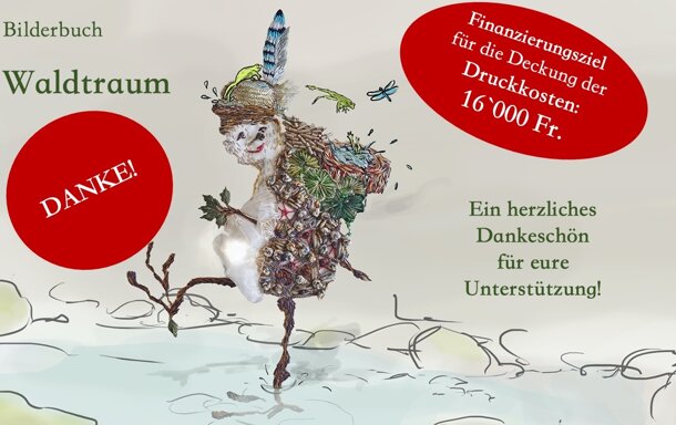 WOW! Herzlichen Dank! Heute ist die wichtige Marke von 10'000.- Fr. überflogen worden. Der Ürzel macht grad einen Freudengump! Jetzt geht es darum, so nahe wie möglich an das Finanzierungsziel von 16'000 Fr. zu kommen, damit auch der Druck finanziert werden kann. Die Kosten für die Illustrationen sind nun gesichert. Ein freudiges DANKE! Herzlich, Chantal